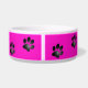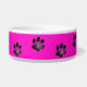 Deze schattige gepersonaliseerde hondenkom bevat een zwart pootafdrukpatroon en een groot zwart botpatroon in het midden op een roze roze achtergrond. Pas het aan door de naam van uw huisdier of om het even welke tekst toe te voegen u in de doopvont, de doopvontkleur en de doopvontgrootte van uw keus wenst!