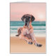 Schattigee Grote Deen hond zitten op het strand. Voeg een naam of een tekst toe volgens uw vereisten.