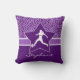Wilde paarse voetbal gooit kussen met een paarse cheetah op de achtergrond. Een blanke voetbalspeler silhouette zit in een donkere paarse ster aan de voorkant. Voeg je eigen naam en nummer toe voordat je bestelt!