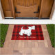 Eigen tekst Rood schotel, witte doodsbang. U bent welkom Doormat. Kerstmis ziet er een doormat uit.