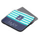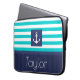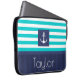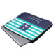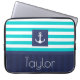 Nautische laptophoes met turquoise & marvy blue striped patroon en aanpasbare tekst.