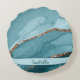 Aangepaste Turquoise Blauwgroen Gold Marble Agate Rond Kussen