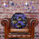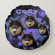 Custom Your Pet or Loved One met een ster in een 90's stijl zwarte achtergrond Round Pillow met sterren in een blauw en paarse tint. U kunt de afbeeldingen wijzigen in uw hond of kat en de huidige tekst wijzigen in de naam van uw hond of kat. Wat je wilt op je ronde kussen kan worden ingevoegd in het afbeelding gedeelte.