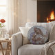 Het is een mooi kussen met het levenswiel er op. Je ziet dat het een afbeelding is van een tempeldeur of wand, het hout is herkenbaar. Het past geweldig in ons interieur: een beetje Zen, maar wel kleurig. Mooie kleuren, zoals op de afbeelding.