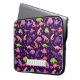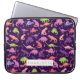 Gepersonaliseerde Waterverf Dinosaur Pattern Pink Paars Girls Kinder laptop Hoesje. Waterverf dinosaurussen in groen, roze en paars op een donkere paarse achtergrond. www.SamAnnDesigns.com