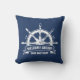 Voeg een vleugje nautische elegantie toe aan uw interieur met dit gepersonaliseerde marineblauwe kussen. Met een prachtig gesmolten scheepswiel ontwerp, is dit kussen perfect voor het toevoegen van een kusttoets aan uw woonkamer, slaapkamer of boot.