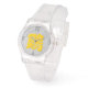 geel ideogram van de Rooster op papier gesneden illustratie als achtergrond. U kunt de kleur van het ideogram eenvoudig wijzigen door op de knop Aanpassen te klikken. Ontwerp op Silicone Strap Clear horloge met jonge stijlnummers. Perfect voor Chinees nieuwjaar van de haan of verjaardag (mensen geboren in haan jaar).