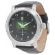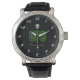 Aangepaste zwarte leder Let op UFO-commandant Horloge