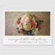 Een moderne, op vakantie gebaseerde, magnetische kaart met een eenvoudig design met een horizontale foto van je pasgeboren baby jongen of meisje, samen met "vrolijke kerst" in een elegant script en de naam van de baby en de geboortestaat hieronder. Deze leuke vakantieaankondigingsmagneet is de perfecte manier om je nieuwe baby aan al je geliefden aan te kondigen.