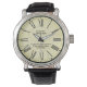 Een horloge dat is ontworpen als een geschenk voor het herkennen van loyale service bij een bouwaannemer, voeg de naam van de ontvanger en het bedrijf of de organisatie. Perkamentstijl achtergrond.