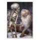 Schilderen van een Capuchin-aap die op een bureau leunt en in het gezicht van een skelet staart. Geweldige olie op doek van de Oostenrijkse schilder uit Praag, Gabriel von Max (1840-1915).