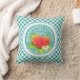 Aardbei Blauwgroen Sierkussen Gingham