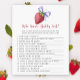 Schattige meisje baby shower uitnodigingskaart met waterverf illustratie van aardbei en boog. De tekst zegt: "Een bessenzoete baby is onderweg."
