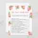 Leuk meisje baby shower uitnodigingskaart met waterverf illustratie van aardbeien. De tekst zegt: "Er komt een beszoete baby aan." Overeenkomende objecten beschikbaar.