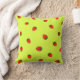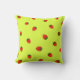 Kleurrijk aardbeienpatroon op heldergroene achtergrond en rood op het achterkussen