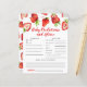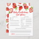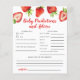 Stomme aardbeienthema baby shower baby voorspellingen en advieskaart met illustraties van de rode aardbeivrucht. De teksten zijn bewerkbaar. Perfect spel om te spelen tijdens de douche en zal zeker een groot goed zijn! De kaart vraagt gasten om te voorspellen hoe de baby eruit zou zien.
