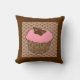 Aardbeiroze bruingebrande cupcake afgetopt met een chocoladevlinder in een decoratief, chocoladebruin, gevlekt kastanjeomhulsel, op een bruine, bruine en koraalroze Chinese achtergrond, gooit kussen
