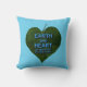 Blauwe tekst, "EARTH and HEART zijn speld met dezelfde letters", bovenop een groen, hartvormig blad. Voeg je eigen aanvullende tekst toe. U kunt de achtergrondkleur, evenals de kleur van jouw tekst veranderen.