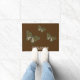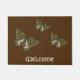 Ochre, zwarte, witte en groene stippen creëer golven-achtige patronen en accentueren de vlekken in deze ondiepe vlinder, geïnspireerd door de traditionele stipkunst van de Australische Aboriginals. Pas de tekst op deze deurmat aan om een gepersonaliseerde decoratie voor uw ingang te creëer.