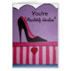 Roze en zwarte stiletto hoge hakken, met een roze en fuchsia schoenbox. Heel gierig en een absoluut geweldig wenskaart.