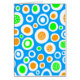 Een aantrekkelijk, met de hand getekend abstract ontwerp dat bestaat uit ronde vormen in wit, oranje, groen en blauw.