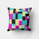 Een origineel abstract ontwerp dat bestaat uit onregelmatige rechthoeken en vierkantjes in roze, geel, cyaan blauw en zwart.