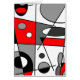 Digitaal geometrisch ontwerp in rood, zwart, grijs en wit.