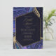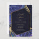 Je krijgt zowel glamour als een grote impact met deze coördinerende trouwset met abstracte agatpatronen, getextureerd met faux-kristallen en hoogtepunten in glittering faux gouden folie. Opvallende kleurencombinaties, zoals deze suite met het 'night-sky' palet van diep middernacht blauw tot zacht violet, creëer de achtergrond voor de stukken in dit gecoördineerde collectie. Deze elegante Bridal Shower-uitnodiging biedt alle bovenstaande functies met een zeshoekig, semi-transparant label in donkerblauw voor de marine om jouw tekst vast te houden. Een sjabloon wordt verstrekt om uw gebeurtenisdetails gemakkelijk toe te voegen. Uitzicht de verbinding van het collectie op deze pagina om alle passende punten in dit prachtige ontwerp of onderzoek ID827 te zien om extra kleurenkeuzen voor dit ontwerp te zien.