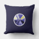 Moderne, donkerblauw gooien kussen met abstracte fractale kunst in een wit rond lijst.