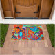 Abstract floral colorful orange, blue, green outdoor entrance rug.