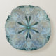 Abstract Flower Fractal Blauwgroen Wit Blauw Grijs Rond Kussen