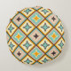 Abstract geometric pattern with diamond shapes in pastel colors. Each contains a star-like motif in teal, orange, or brown. Retro and symmetrical design.