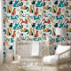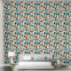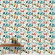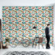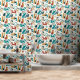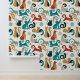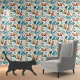 Geometrische katten in een aangenaam palet van turkoois en goudenroede op een gebroken witte achtergrond.