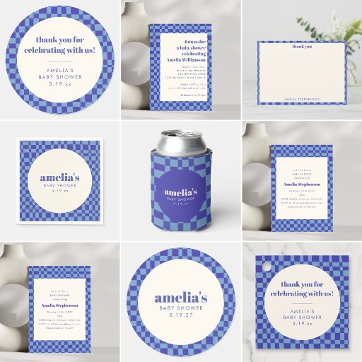 Modern Blue Abstract Checkerboard Baby ShowerOntworpen door Opal Ellery