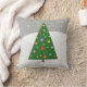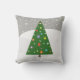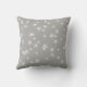 Dit winterlandschap is gemaakt met lettertypen en vormen, en komt tot leven op deze werpkussens. Het is een wijngaard maar vrolijk. Grijze rog, witte sneeuwvlokken, kerstboom met sierplanten die uit de sneeuwvlokken groeien. Op de rug, een grijs gebied met witte asterisk sneeuwvlokken van willekeurig patroon en grootte, alsof zij door de lucht drijven.