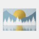 Een mooi ontwerp dat een bos in sneeuw, berglandschap en een gouden zonsondergang of zonsopgang in het water laat zien. De kleuren tonen omvatten neutrale tonen zoals blauw, wit en goud. Een stijlvol ontwerp voor het winterdecor en het feestseizoen.