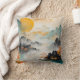 Een zeer abstract landschap dat hints naar bergen, water, bomen en lucht in perzik, grijs en gouden creëer's een mooi, harmonieus, wabi-sabi ontwerp op dit kussen gooien.