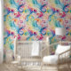 Abstract Licht Aqua Roze Bloemen Paisley Behang