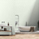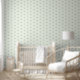 Dit aantrekkelijke lichtgroene behang heeft een eenvoudig patroon van liefdesharten. De pastelkleur en het eenvoudige ontwerp maken het ideaal voor een slaapkamer of kinderkamer.