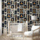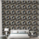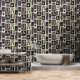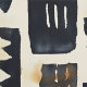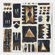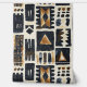Met de hand geschilderd Afrikaans modderlakenontwerp met gewaagde geometrische vormen in aardse tinten van zwart, bruin en crème.