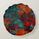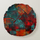 Abstract Modern Kleurrijk Koel Artistiek Patroon. Rood Sinaasappel Blauw Vierkanten Abstract Kunst Rond Kussen.