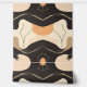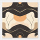 Een modern abstract ontwerp met vloeiende organische vormen en aardse tinten, waardoor een harmonieuze balans ontstaat van zwarte, beige en warme bruine tinten. De gebogen lijnen en gelaagde vormen lijken op natuurlijke vormen, wat een kalmerende, stijlvolle touch toevoegt. Dit patroon heeft een verfijnd, aards palet dat geschikt is voor een verscheidenheid aan toepassingen, zoals muurkunst, huisdecoratie of mode-accessoires, waardoor elke ruimte een warme, eigentijdse sfeer krijgt.