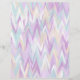 Een abstract ontwerp van chevron in een paars, turquoise, ivoor en wit palet.