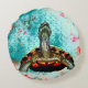 Een handgetekende afbeelding van een schildpad met een abstracte achtergrond. Gebruikte kleuren: rood, blauw, blauwgroen, groen, geel, paars.