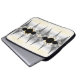 Deze laptophoes is voorzien van abstracte fractale kunst in zilver en grijs gradiënt met gouden accenten.