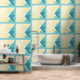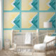 Abstract Teal and yellow art Behang