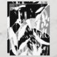 Een abstract ontwerp met willekeurige vormen en "hallo" tekst in zwart, wit en grijs.