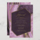 Je krijgt zowel glamour als een grote impact met deze coördinerende trouwset met abstracte agatpatronen, getextureerd met faux-kristallen en hoogtepunten in glittering faux gouden folie. Opvallende kleurencombinaties, zoals deze suite met luxe paletten van gedempte druif en maas tot zacht orchidee roze, creëer de achtergrond voor de stukken in dit gecoördineerde collectie. Deze elegante repetitieve uitnodiging uit het diner kenmerkt al het bovenstaande met een zeshoekig, semitransparant etiket om jouw tekst te houden. Een sjabloon wordt verstrekt om uw gebeurtenisdetails gemakkelijk toe te voegen. Uitzicht de verbinding van het collectie op deze pagina om alle passende punten in dit prachtige ontwerp of onderzoek ID827 te zien om extra kleurenkeuzen voor dit ontwerp te zien.