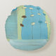 Abstracte blauwe eierparade rond kussen
