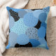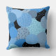 Een abstract ontwerp met gelaagde ronde vormen en onderbroken stippen, in een kleurrijk blauw palet.